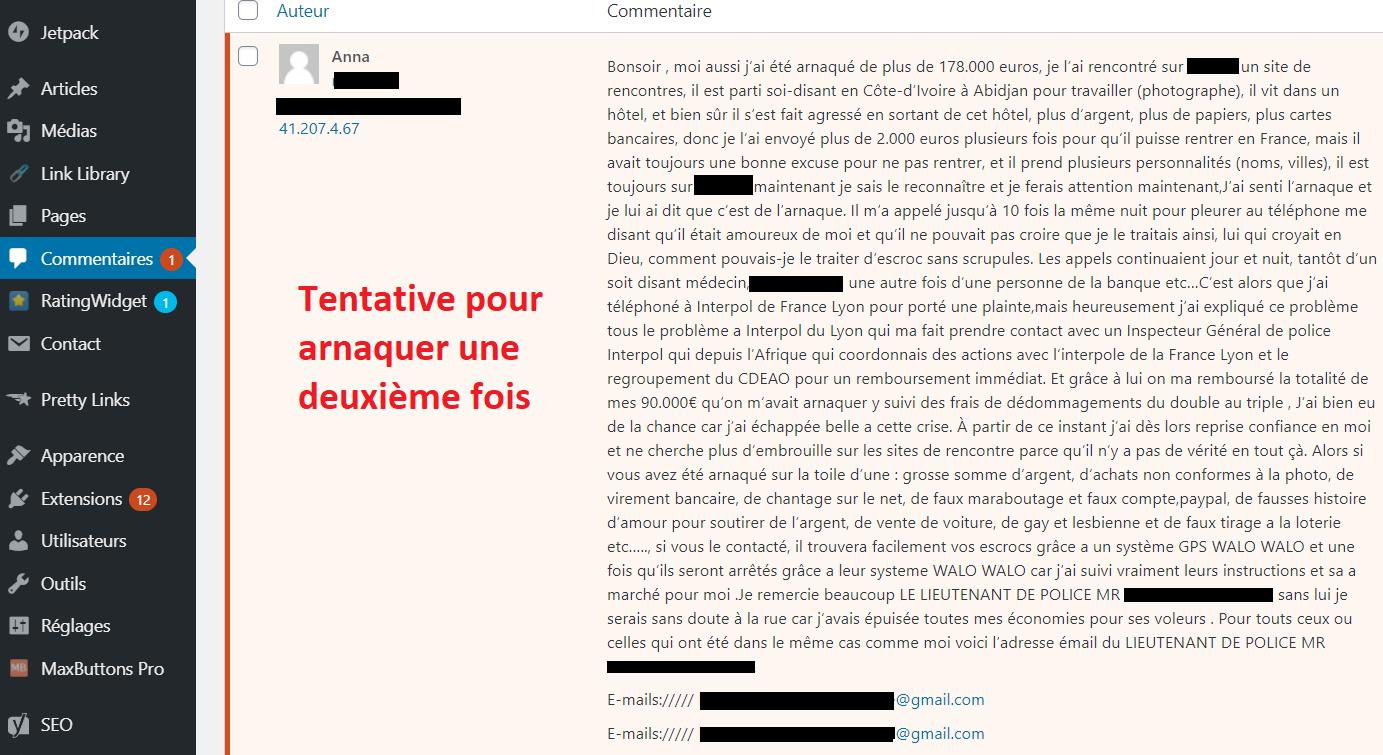 Mais quand je parle d’arnaque, je parle d’une réelle tentative d’escroquerie.